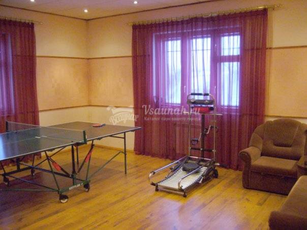 2-й этаж: бильярдный зал – русский бильярд 12 футов; теннисный зал – настольный теннис; 3 комнаты отдыха, в общей сложности в коттедже имеется 14 двуспальных мест (раскладные диваны ); терраса с видом на озеро.